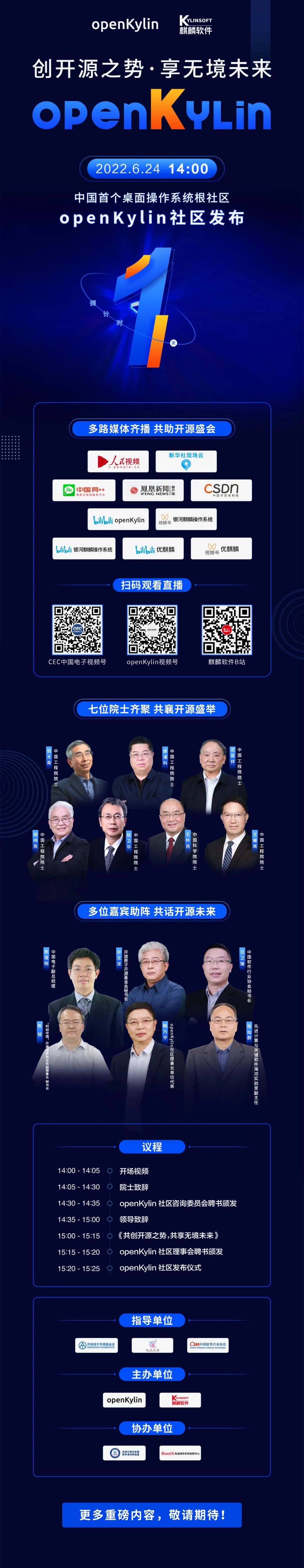 中國首個桌面操作系統根社區openKylin發布會明天下午(6月24日周五)14:00正式開啟!屆時,人民網人民視頻、新華社現場云、中國網++、CSDN、鳳凰新聞等權威媒體平臺全網直播。