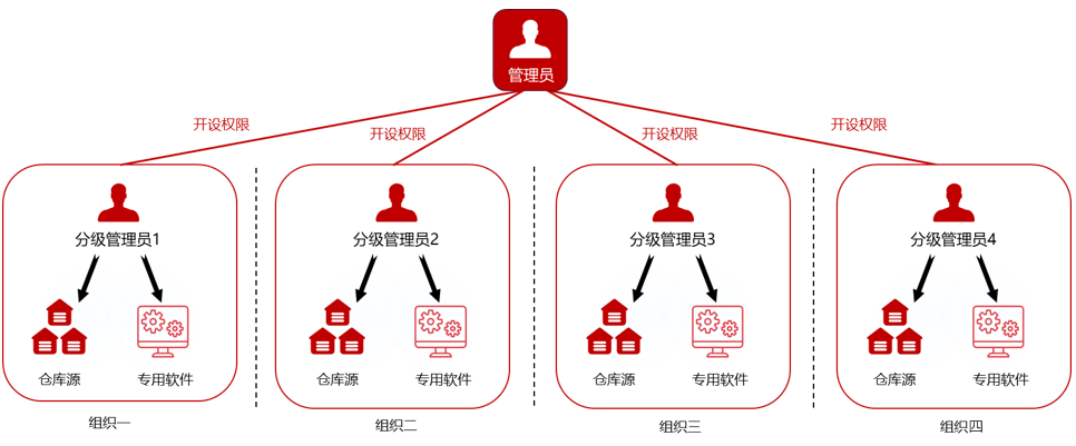 結合用戶的內網環境,平臺提供一套軟件商店私有化分級部署方案,采用一中心多節點的組網方式,在不同地點部署服務商和倉庫源,實現從總單位到分級單位的分層管理,提高產品跨地域協作的能力;版本新增分級管理模塊,支持創建分級組織以及對運營號進行分級權限管理,可分組織配置不同的管理員,同時進行不同組織軟件內容的管理,可對不同組織進行特定軟件內容的分配下發,提升管理效率。
