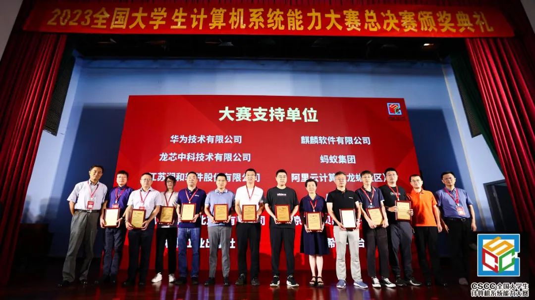 本屆大賽得到了眾多國內龍頭企業的支持。大賽指導委員會主任國防科技大學王志英教授、大賽技術委員會主任北京航空航天大學高小鵬教授和中山大學教務部主任兼教務管理處處長陳省平共同為麒麟軟件等大賽支持企業頒發了感謝牌。