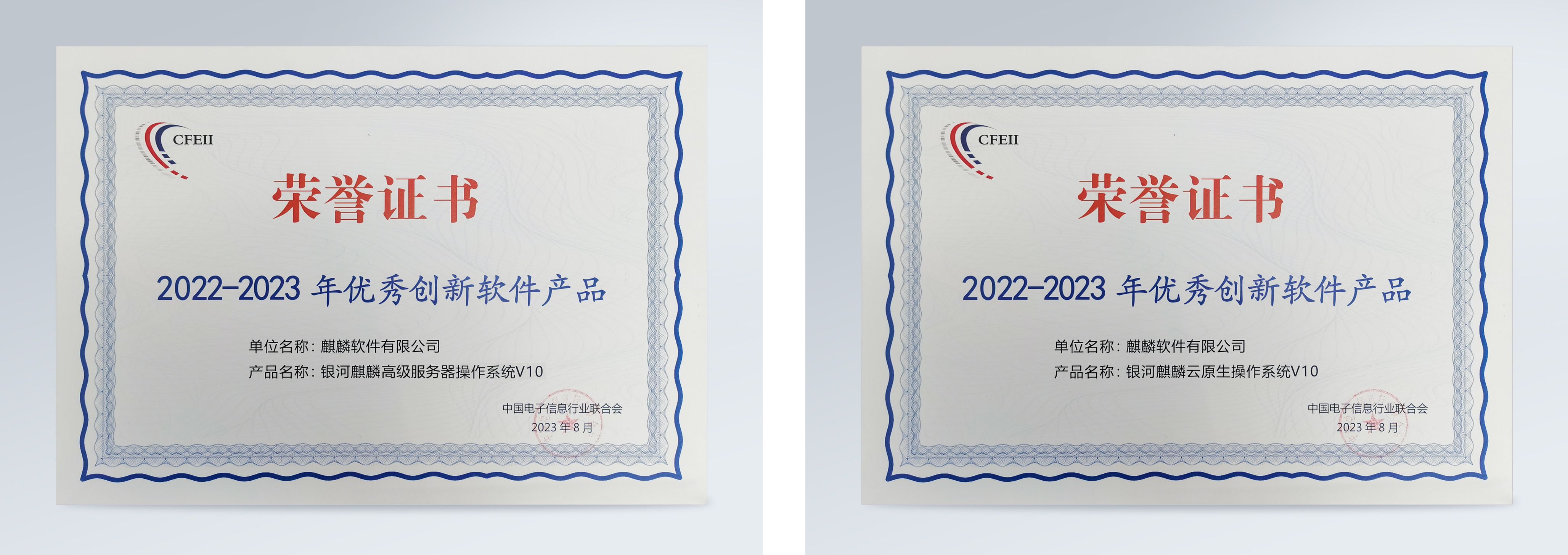 同期,中國電子信息行業聯合會組織的《2022-2023年度優秀創新軟件產品推廣目錄》正式發布。銀河麒麟云原生操作系統V10、銀河麒麟高級服務器操作系統V10 入選!