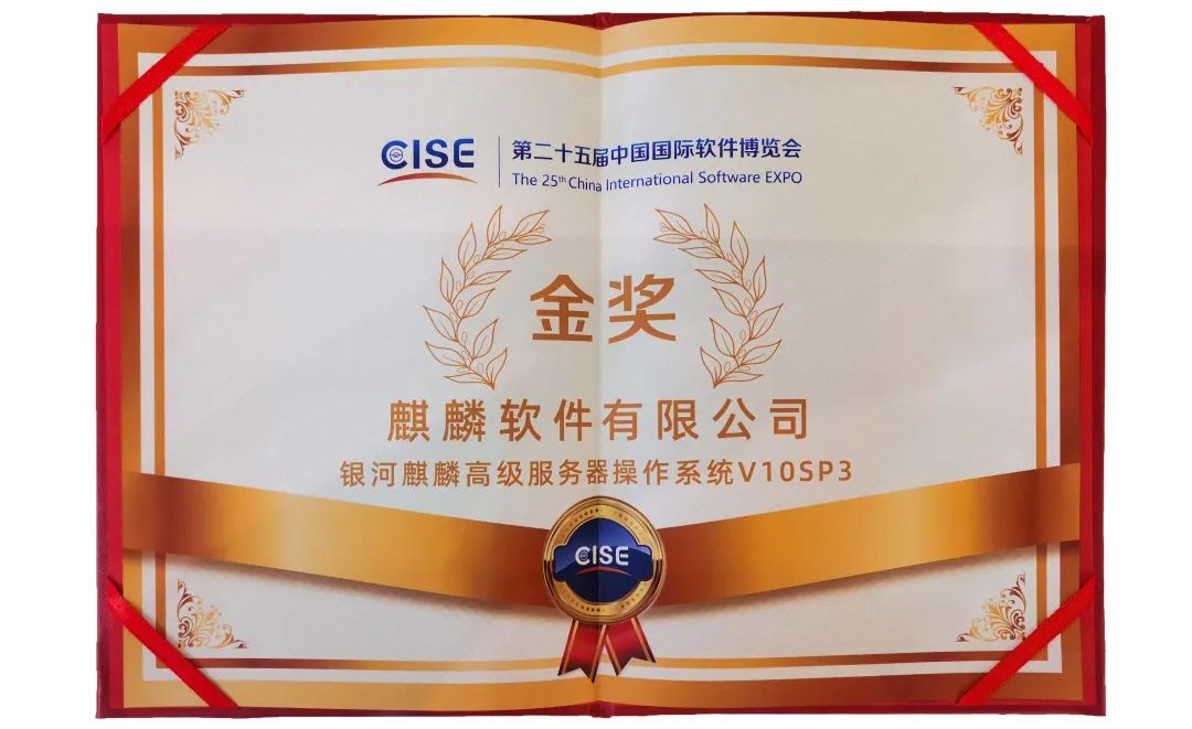 銀河麒麟高級服務器操作系統V10 SP3榮獲軟博會唯一金獎。