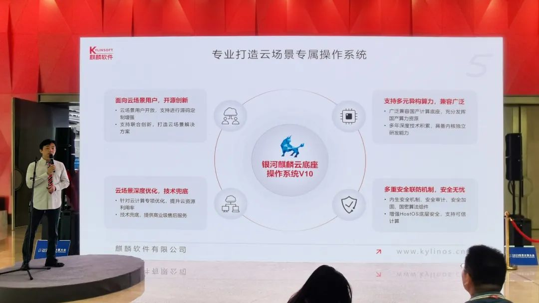 麒麟軟件產品與社區發展中心副總經理楊匯成介紹,打造自主云操作系統是順應時代發展、促進數字技術和實體經濟深度融合,賦能傳統產業轉型升級的需要。麒麟軟件充分發揮國產算力底座能力,依托獨立研發團隊和嚴密的內生安全機制,聚焦內核核心技術、積極投入云技術創新,打造面向云時代、沉淀云場景的新一代國產云底座操作系統。