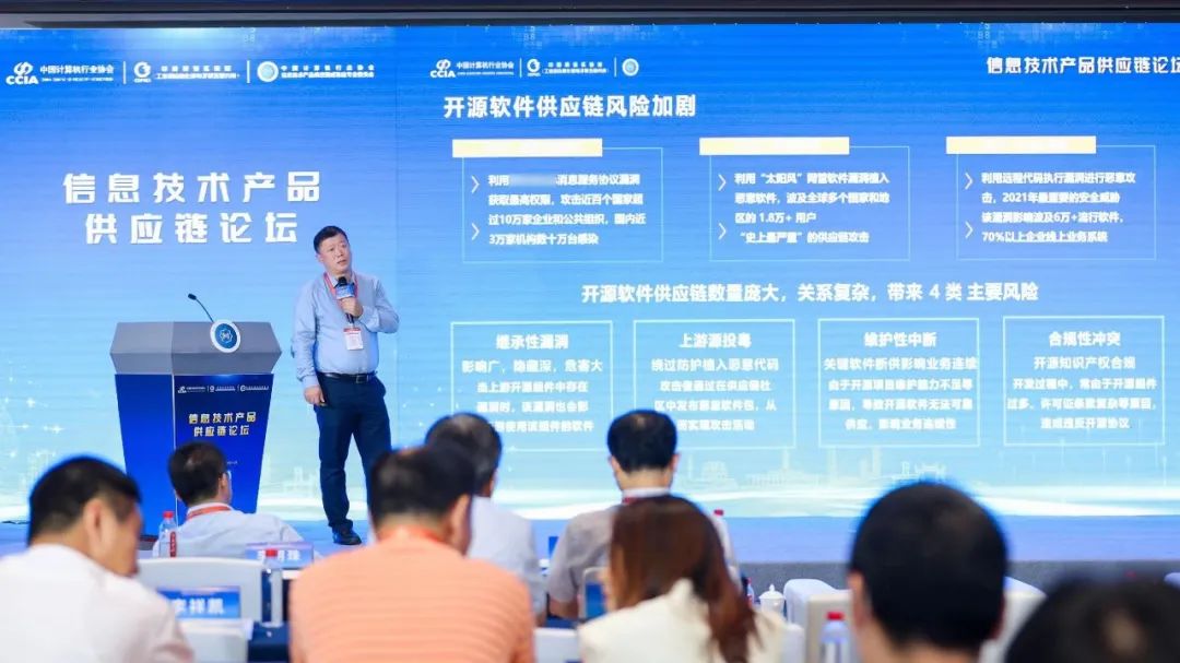 大會期間,還舉辦了多場專業交流對接活動。麒麟軟件高級副總裁李祥凱出席信息技術產品供應鏈論壇,圍繞操作系統供應鏈管理的實踐和思考進行了主題分享。