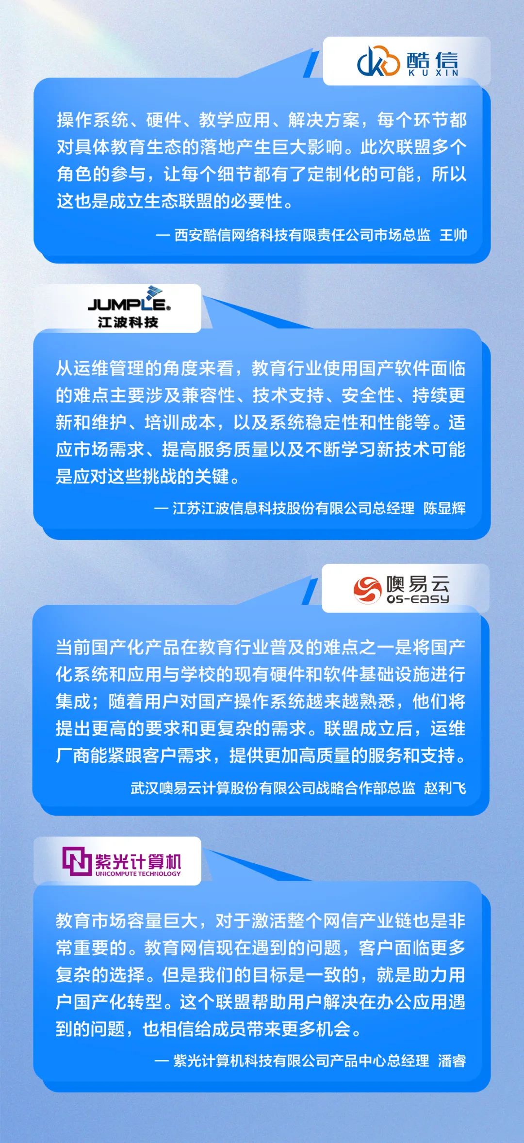 生態建設是教育網信產業發展的關鍵。圍繞著教育數字化及高質量發展的要求,麒麟軟件致力打造“更懂教育的操作系統”,關鍵在以完善的內生安全可信體系和廣泛的兼容生態體系,以自身的技術優勢,成就生態伙伴共同成長的向心力。