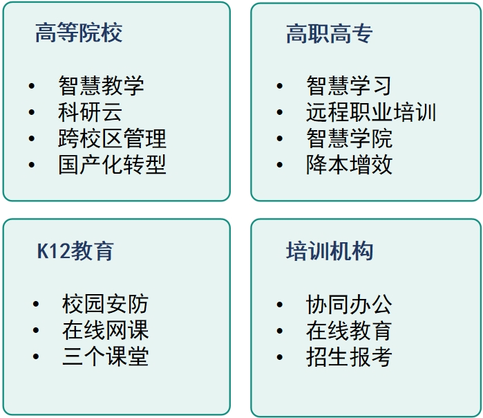 ●?為校園打造零死角的云安全防護體系,提供預防、防御、檢測、響應等四大場景化部署,符合等保2.0要求;