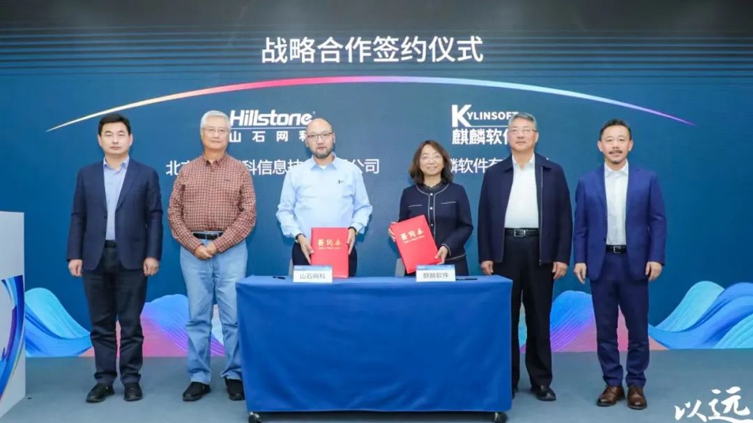 一直以來,麒麟軟件與山石網科等產業鏈上下游伙伴緊密協作,通過產品適配、生態共建、聯合方案打造、創新技術研討等方式,多維度、全方位、持續創新筑牢信息安全基座。基于之前的合作基礎,此次會議簽約環節中,麒麟軟件副總經理姚翎與山石網科高級副總裁、首席技術專家楊慶華作為雙方企業代表,進行戰略簽約。