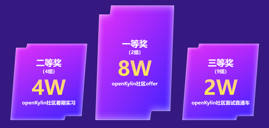 大賽邀請了多名院士以及權威機構坐鎮,評委由教授、學者以及頭部企業的專家擔任。大賽設置50萬獎金,決賽獲獎者還將獲得openKylin社區面試直通車、暑期實習以及官方offer等獎勵。