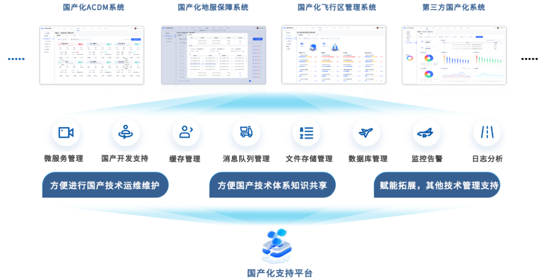 2022年,中國航信成立“國產化適配中心”,聯合麒麟軟件等上下游優勢企業,同時開展兩條技術路線(ARM和C86)在民航旅客服務系統進行適配攻關工作,同時構建國產操作系統、數據庫及各類中間件等“全棧國產技術體系”,結合機場業務場景開展針對性攻關,全力打造“自主可控地面運營產品體系”,為機場產品自主創新提供全面支撐。