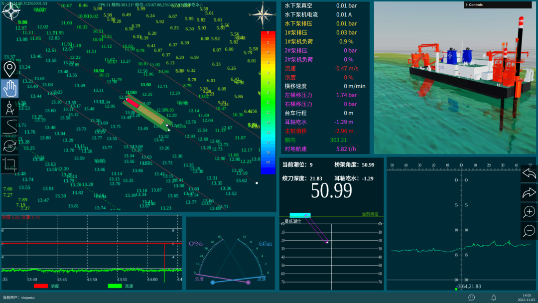 中交疏浚集團基于銀河麒麟操作系統和飛騰CPU開發的一組跨平臺、通用型、基于智能算法的疏浚控制軟件,實現對疏浚船的施工管理和自動化監控,實現疏浚業務國產“大腦和神經系統”。這款疏浚控制系統通過可視化觀察挖泥船的施工狀態、疏浚軌跡和地形剖面等信息,幫助提高施工區域平整度、施工質量。通過實時監測疏浚船的施工運行參數,控制系統還可以預防事故或故障的發生。此外,疏浚系統可以自動采集疏浚設備運行數據并分析,為疏浚管理和功效評估提供依據。