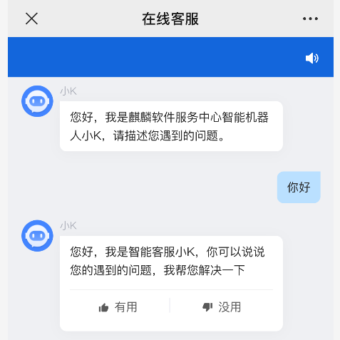 致力于打造“智慧服務”能力,“小K”助力麒麟軟件客服團隊更快速、更準確地解決用戶問題,提高用戶滿意度。相信隨著“小K”的不斷學習和優化,他在問題解決率、答疑速度、用戶體驗等方面會進一步快速提升。我們誠摯邀請廣大用戶,與小K多多交流,給小K更多成長機會,讓他為您提供更好的服務!
