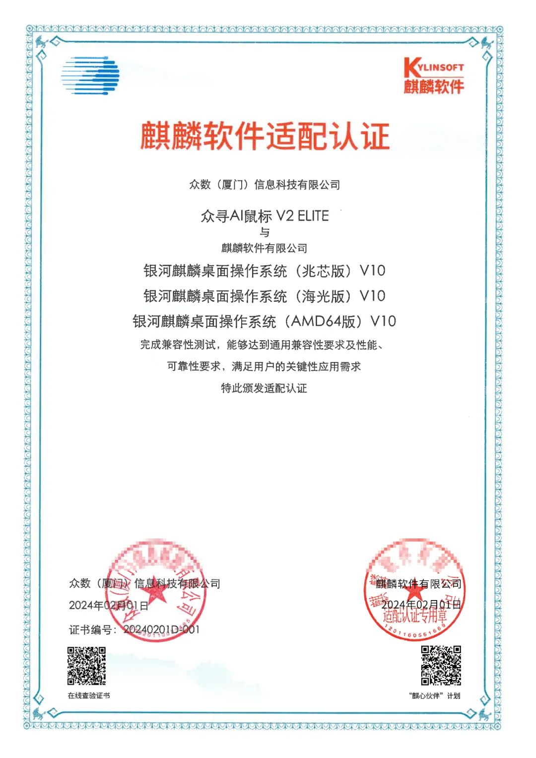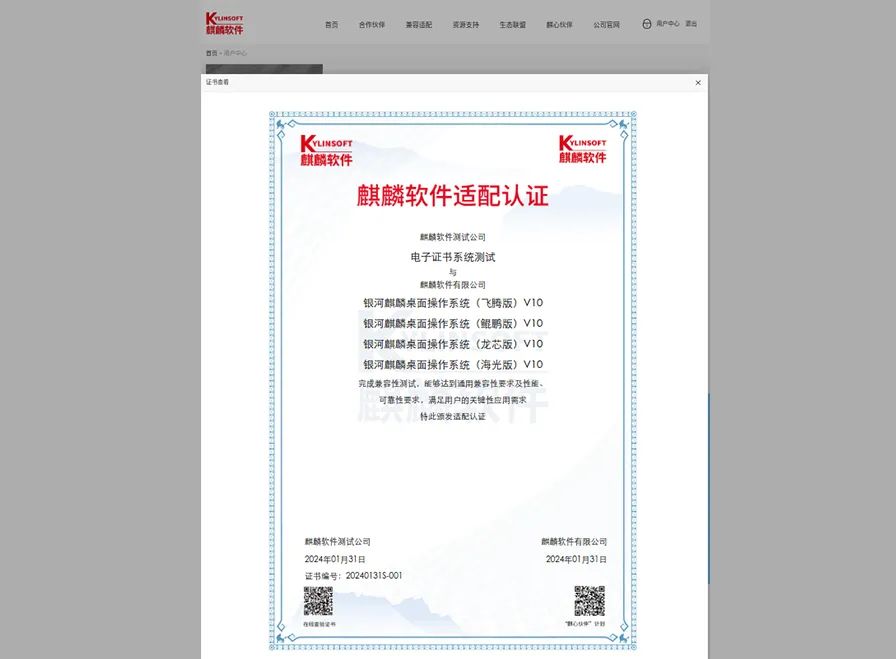 繼麒麟軟件宣布生態適配認證證書全面電子化后(點擊了解更多),首張生態適配認證電子證書正式發出!