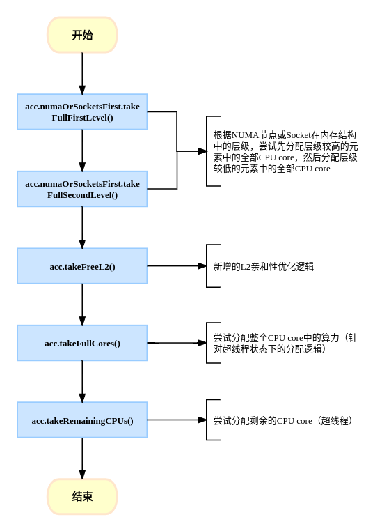 其中,1)繼承了kubelet原生代碼的特性;2)和3)保證了同一任務線程能夠盡可能獨占L2緩存,在綁核時盡可能避免不同任務線程爭搶L2緩存導致的性能波動。