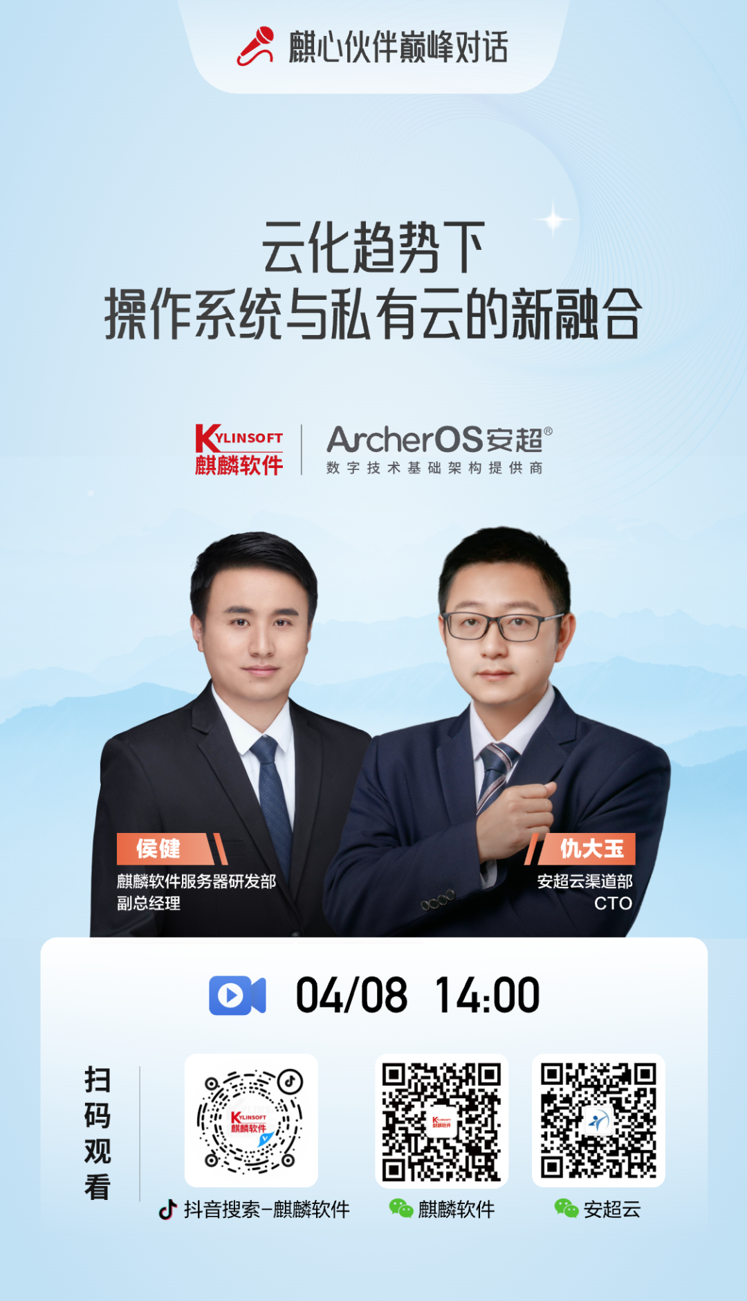 4月8日,麒麟軟件的“老朋友”——國內優秀的數字架構服務提供商安超云將作客“麒心伙伴 巔峰對話”直播現場。在此之前,雙方在金融、交通、教育等行業緊密合作,幫助用戶靈活管理和調整基礎設施資源,提高了資源利用率和業務效率。