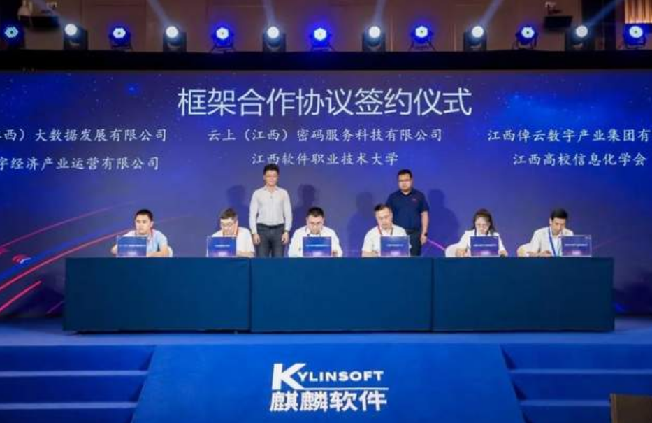 麒麟軟件全面推動聯合創新和開放發展,堅持“平臺共建、資源共享、聯合創新、開放發展”的原則,攜手各類合作伙伴,加快打造充滿動能、勢能的產業生態。大會上,麒麟軟件與云上(江西)大數據發展有限公司、江西高校信息化學會、江西軟件職業技術大學、云上(江西)密碼服務科技有限公司、江西倬云數字產業集團有限公司、宜春數字經濟產業運營有限公司進行了戰略合作簽約儀式。