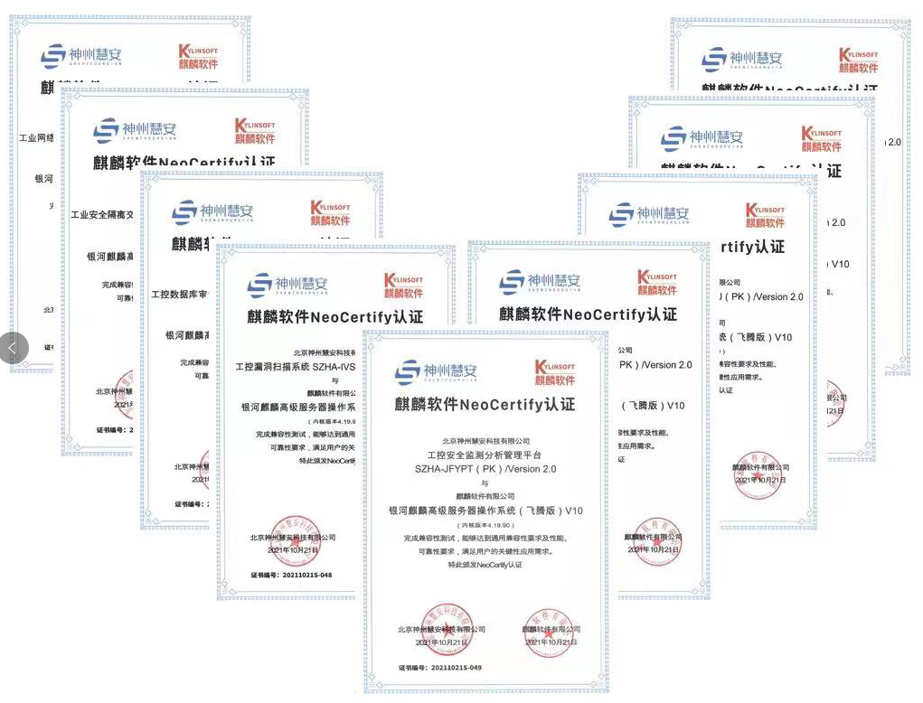 神州慧安是一家專注于工業控制系統安全的創新型高科技公司。公司以創建國家網信體系為基礎,深入創新研發適配,不斷迭代優化的全系列工控安全網信產品已在國家關鍵基礎設施領域得到安全穩定的應用與驗證。目前,神州慧安多款產品通過了麒麟軟件NeoCertify CERTIFICATION級別認證。