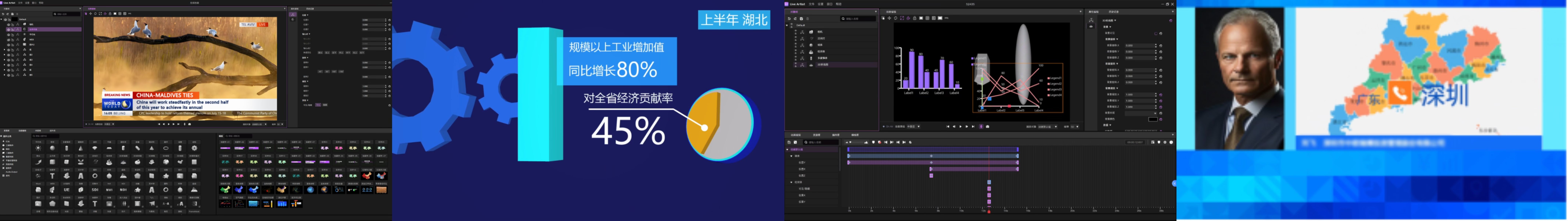 應用軟件:Live Arc在線圖文播控端軟件、Live Artist在線圖文設計端軟件、Live Engine在線圖文渲染服務