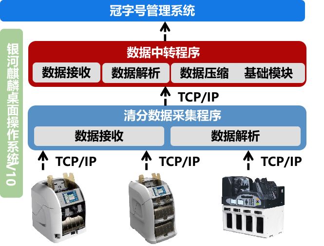 通過對紙幣清分機驅動程序進行改造,實現與使用銀河麒麟桌面操作系統PC的適配,可實現紙幣清分機在網點柜面、后臺及現金清分中心等場景下,與銀河麒麟操作系統通訊,實現與商業銀行及人民銀行冠字號管理系統的信息交互同步、冠字號信息采集和上傳,最終達到紙幣全生命周期的流轉追蹤管理。